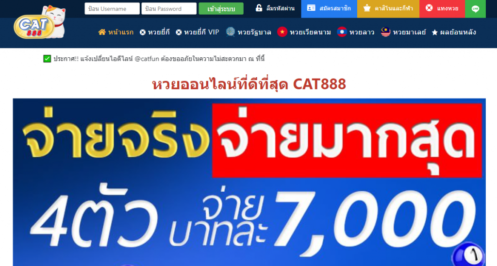 ทางเข้าเล่น cat888 เว็บหวยออนไลน์จ่ายจริง ให้ราคาดีที่สุด รับเต็มไม่หักเปอร์เซ็นต์