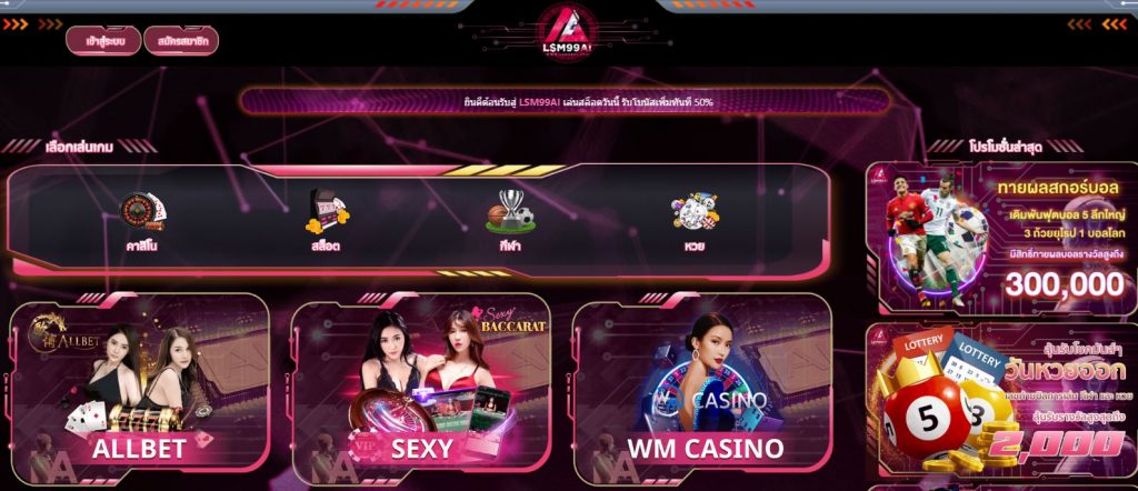 LSM99AI ไม่ใช่แค่เว็บเดิมพันทั่วไป แต่คือศูนย์รวมความบันเทิงออนไลน์ครบวงจร ที่มีเกมให้เลือกมากกว่า 1,000 รายการ ทั้งคาสิโนสด สล็อต กีฬา อีสปอร์ต หวย และอีกมากมายจากผู้ให้บริการชั้นนำระดับโลก เช่น SA Gaming, PG Slot, Joker Gaming, และ นอกจากระบบเกมที่ยอดเยี่ยมแล้ว LSM99AI ยังให้ความสำคัญกับ “การเข้าถึง” ของผู้เล่น โดยการปรับปรุงทางเข้าใหม่ให้ทันสมัย ใช้งานง่าย และปลอดภัย เพื่อให้การเริ่มต้นเดิมพันไม่สะดุดแม้แต่วินาทีเดียว