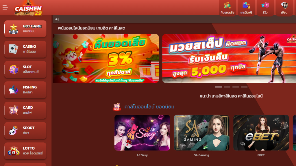 คุณสามารถเล่นเกมต่าง ๆ มากมายได้ที่ CAISHEN29 ประเทศไทย และยังเป็นเว็บไซต์มีความปลอดภัยและสนับสนุนการเล่นเกมอย่างมีความรับผิดชอบ