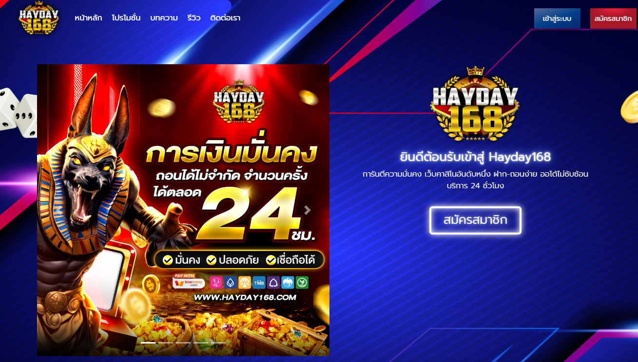 HAYDAY168.COM คาสิโน สล็อต กีฬาออนไลน์เปิดให้บริการตลอด 24 ชั่วโมงท่านสามารถฝากและถอนเงินได้ตลอดเวลาที่ต้องการ เป็นที่นิยมใช้บริการมากที่สุดในประเทศไทย รับเดิมพันกีฬาออนไลน์และคาสิโนทุกประเภท บริการลูกค้าทุกวันไม่มีวันหยุด